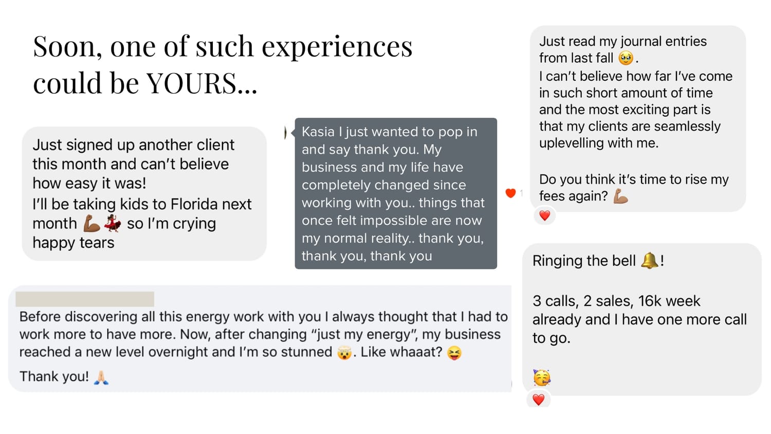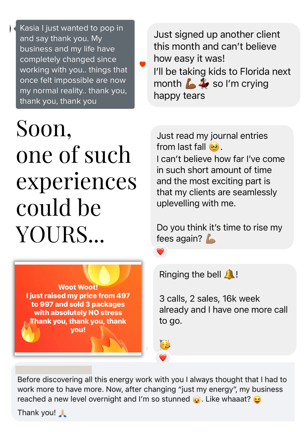 I am continuously using the exact tools to create a flow of money and other amazing things in my business and life (including moving countries, travels, amazing clients, and days when I make more money than I used to make in a MONTH working as a veterinarian).