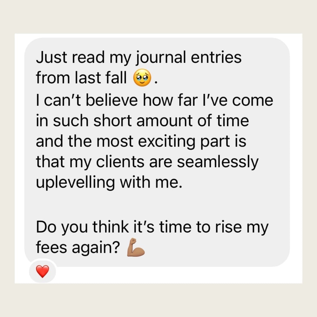 Pricing that reflects your new level (no more discounting, undercharging, or overdelivering).